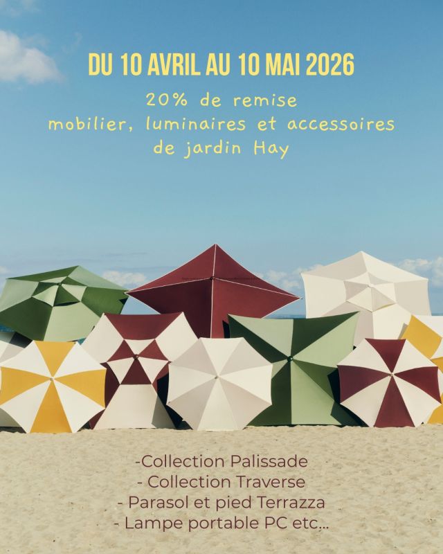Profitez de 20% de remise du 10 avril au 10 mai 2026, sur une large sélection de mobilier, luminaires et accessoires de jardin Hay
