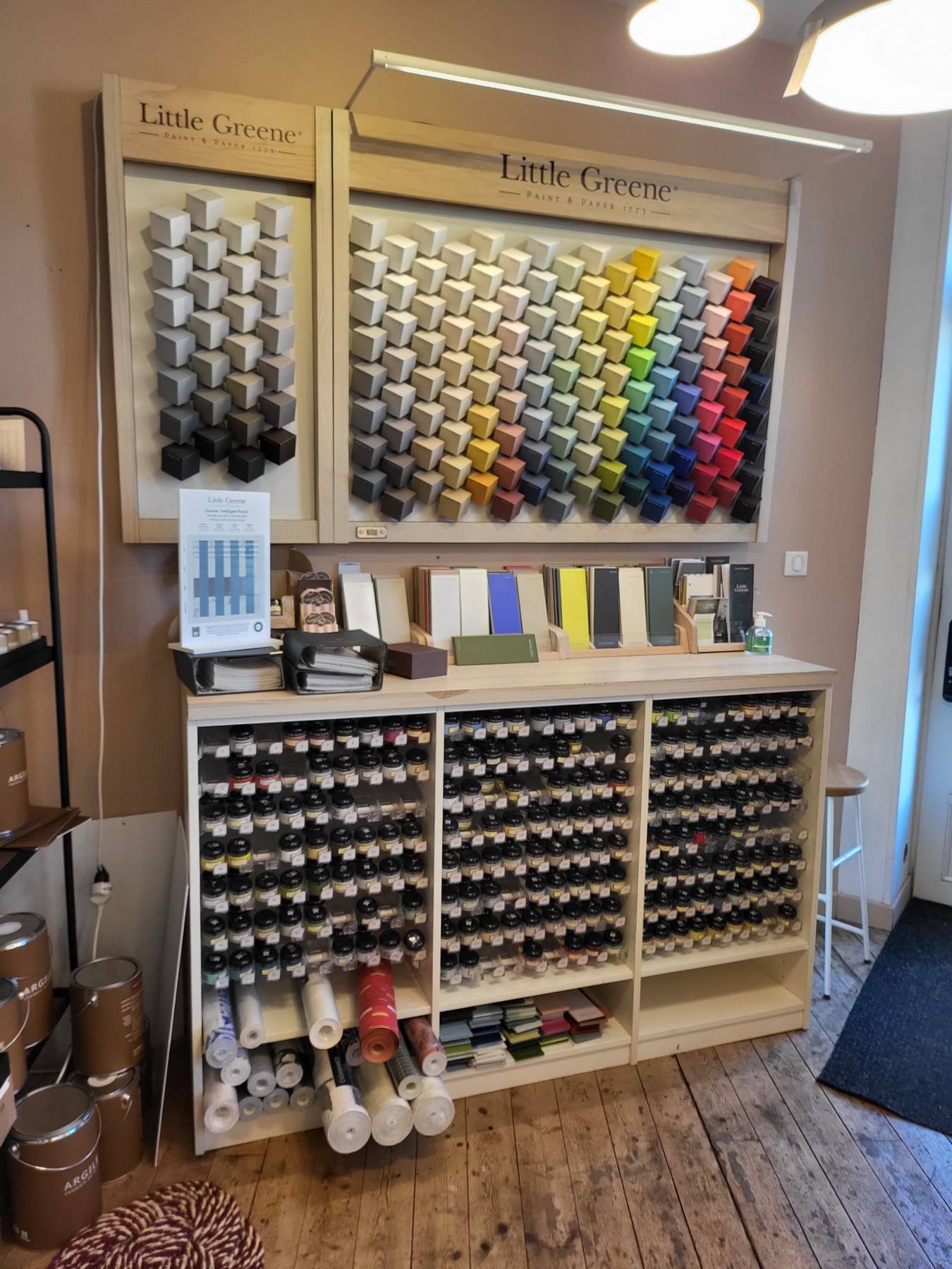 La peinture Little Greene est directement mélangée chez Fleurs de carotte vous pouvez repartir avec votre couleur préférée 5 min après être entré.