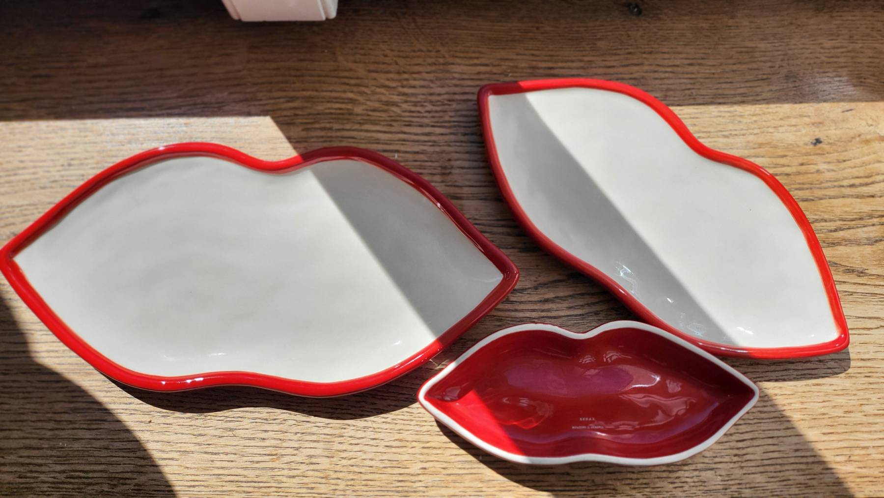 Les coupes en grès de la collection Les Objets Mouleversants prennent la forme de lèvres rouges et ajoutent une touche onirique à votre table. Disponibles en trois tailles empilables, elles forment un élément de décoration remarquable. Parfaites également comme vide-poches pour bijoux et petits trésors.