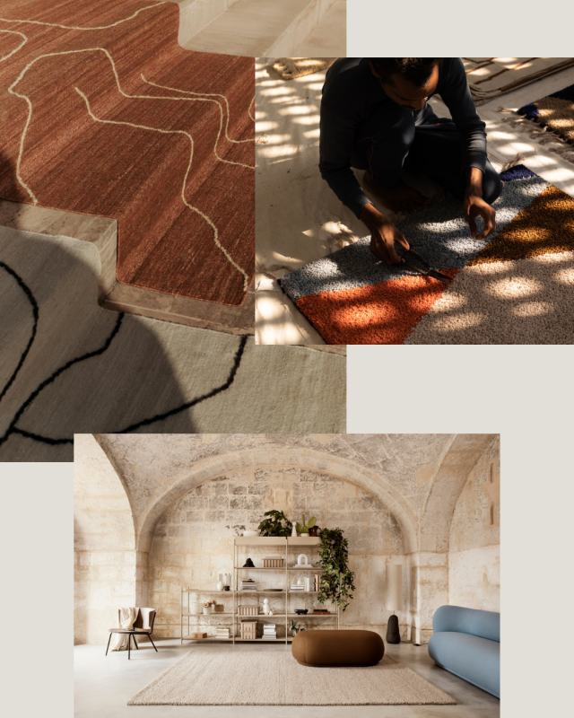 Chaque étape de la production est méticuleusement réalisée à la main, garantissant que chaque tapis incarne la vision de ferm LIVING : un design durable, allié à une approche durable en termes de matériaux et de savoir-faire.