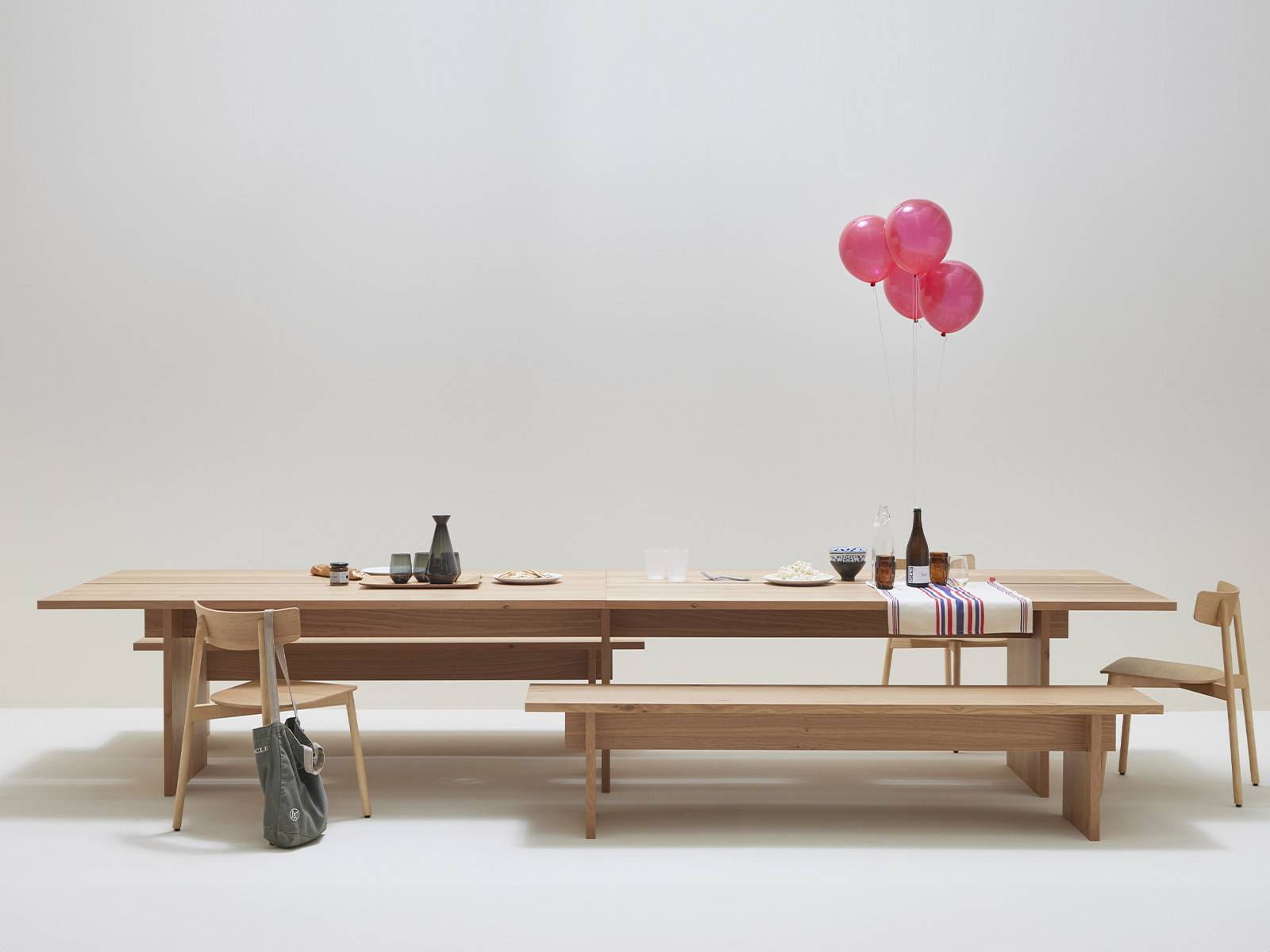 Il est rare que des traverses structurelles définissent l’essence même d’un produit. Dans Leiho, ce sont justement deux traverses parallèles qui traversent les surfaces formant les pieds, créant ainsi une fenêtre intéressante. Un design simple et architectural qui dissimule des solutions intelligentes et polyvalentes. Leiho est proposé dans un large éventail de dimensions et d’usages, comme la table de repas ( Voir ICI ) , de réunion, un système bench, ou encore une banquette continue. La collection comprend également une série d’accessoires conçus pour s’intégrer de manière intuitive.