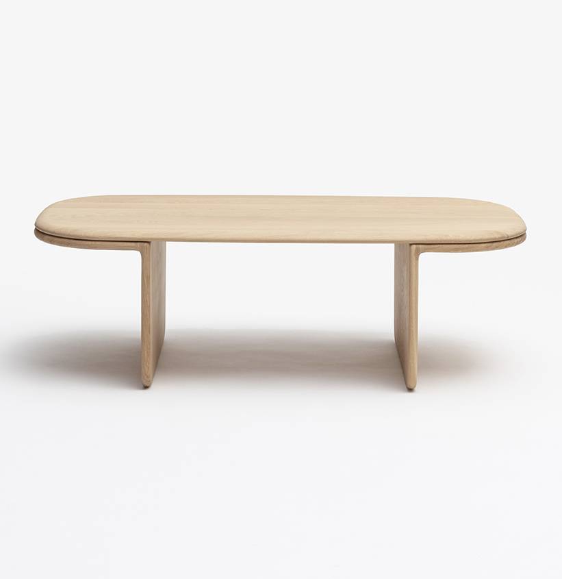 Une silhouette épurée, conçue comme un seul geste. Cette table basse en chêne massif associe un plateau rectangulaire aux angles arrondis à deux pieds découpés sans profil superflu. La chaleur du bois et la pureté de la forme en font un mobilier capable de s’intégrer partout : salon, hall ou bureau. Solide, stable, fonctionnelle — rien de plus, rien de moins.